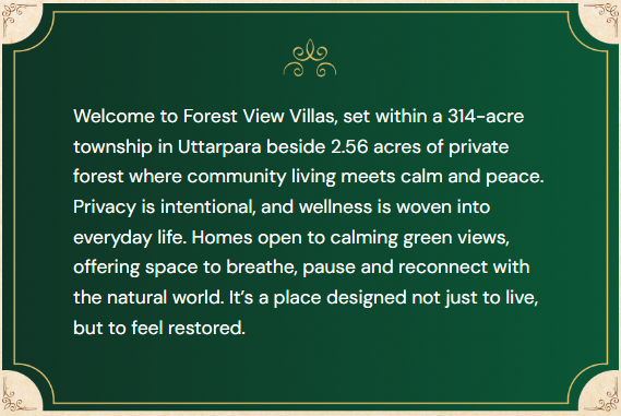 Copyrights © 2025 Shriram Codename Forest View Villas, Uttarpara. All rights reserved.